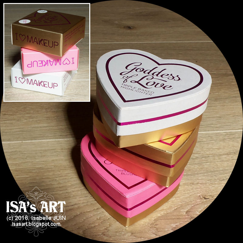 J'ai utilisé un ornement papier/tissu coeur réalisé précédemment, du washi tape, un pochoir fond coeurs encré partiellement, deux photos dont une découpée en cœur à l'aide du P258, ajouté coutures et dentelle, un bouton chat en bois encré et trous pailletés avec du Stickles gold... et voilà !